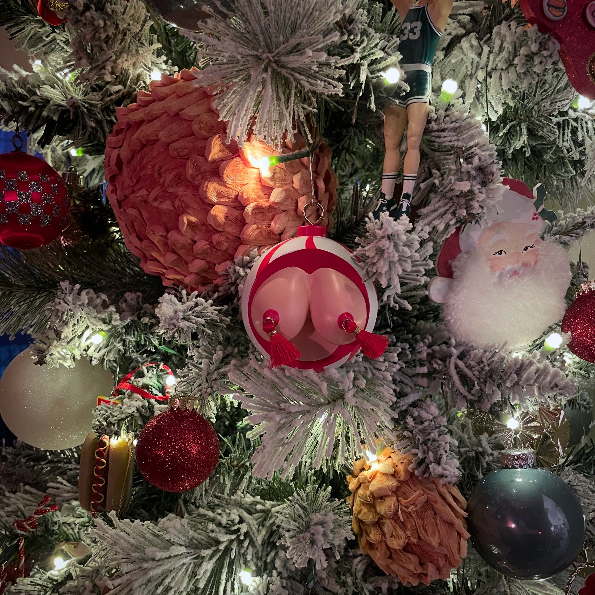 SHE'S BACK! "Peppermint Patty" the first limited edition Official Tit Bits© holiday ornament! Celebrate the holidays with a wink and a twirl. Ornament measures 3" diameter, hand painted, (front) heavy, resin ornament with miniature tassels. Each ornament includes a numbered card of authenticity. In stock and READY TO SHIP TODAY!